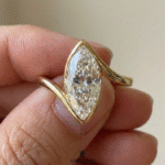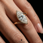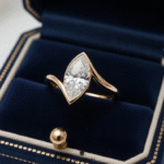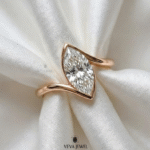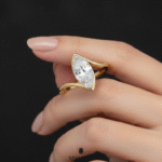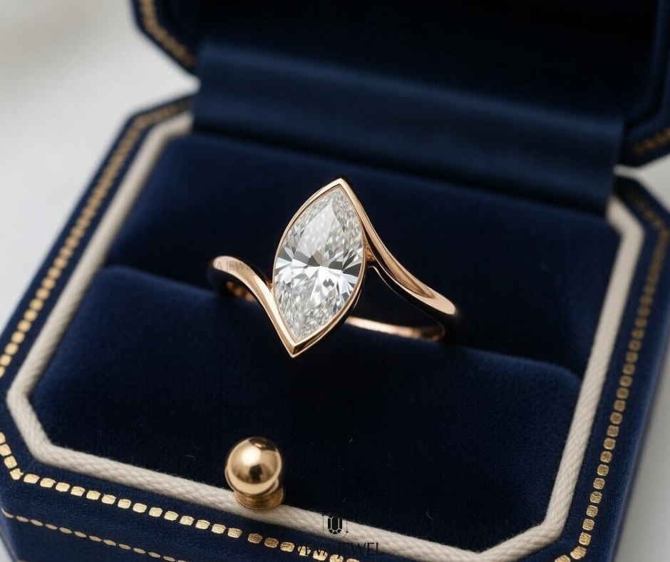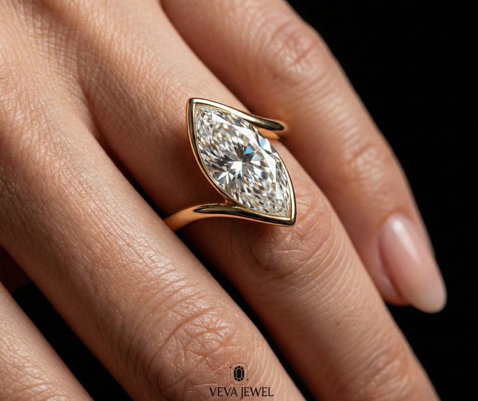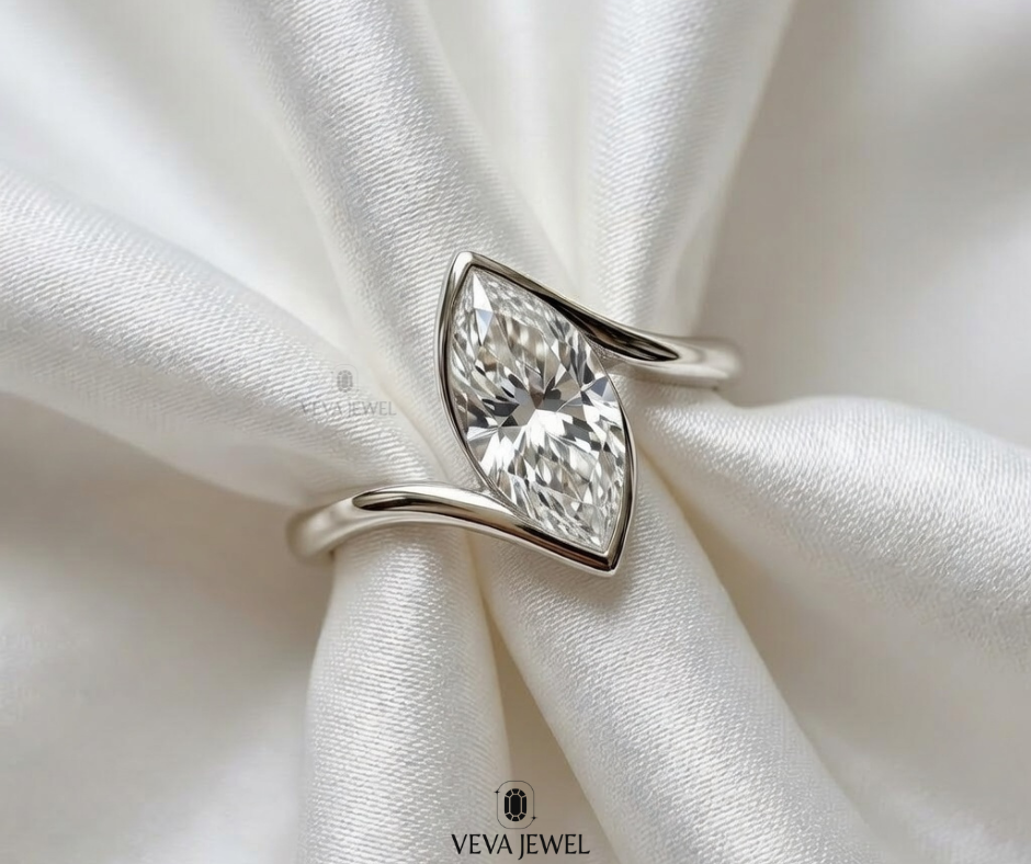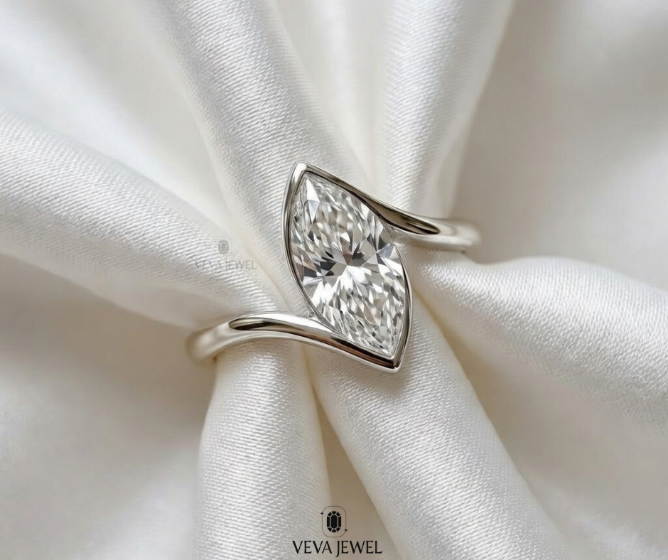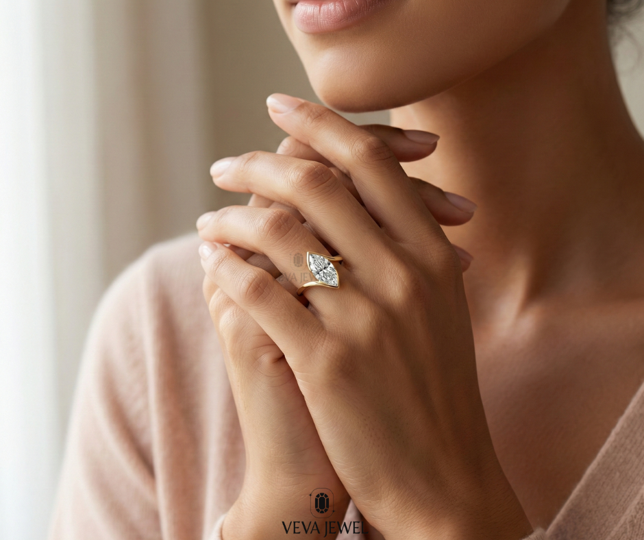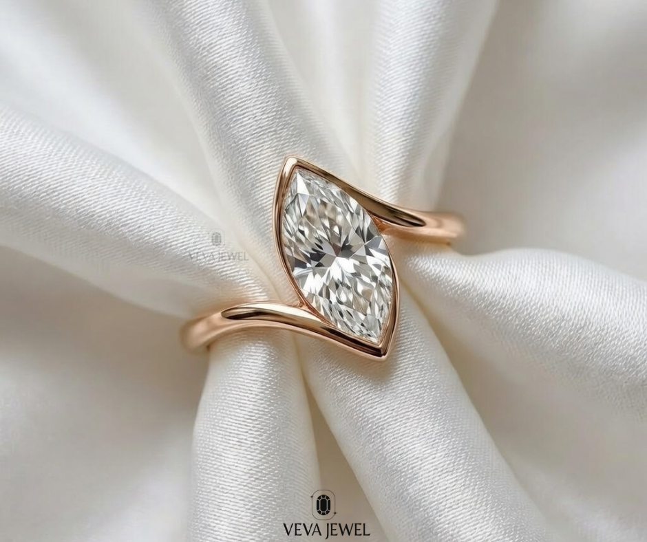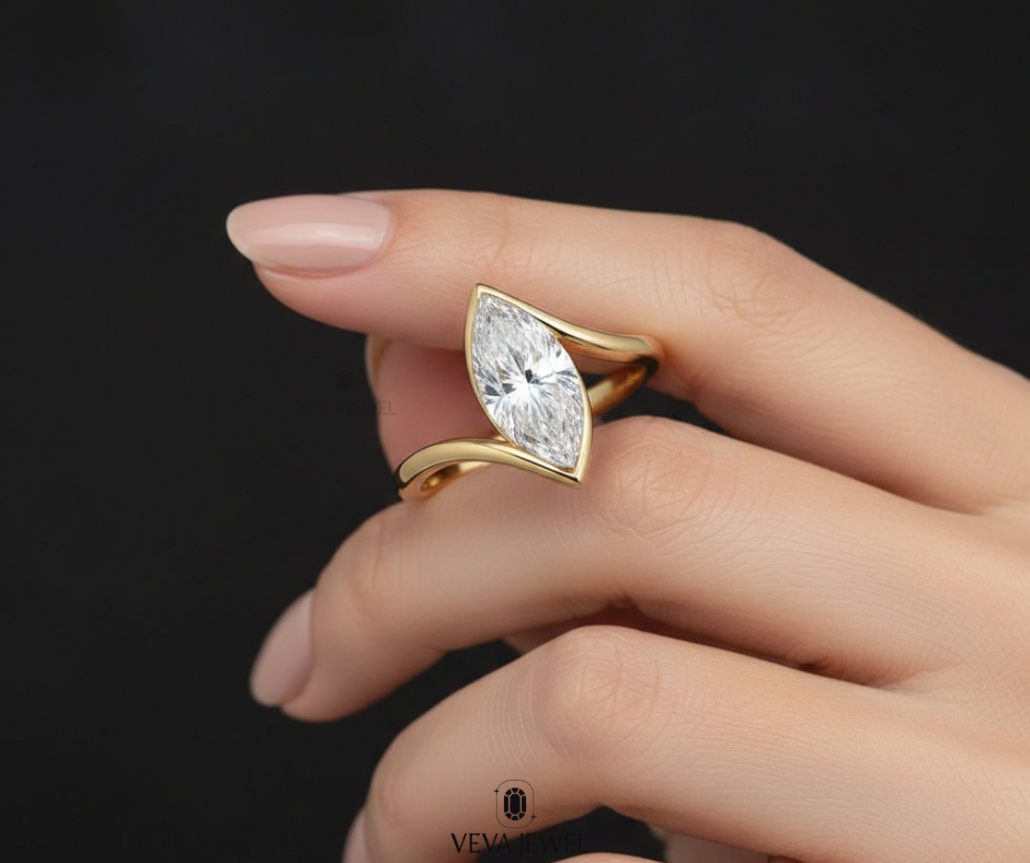 Marquise Cut Moissanite Ring in Gold, Minimalist Solitaire Engagement Ring, Unique Bypass Band Ring, Elegant Bridal Jewelry Gift