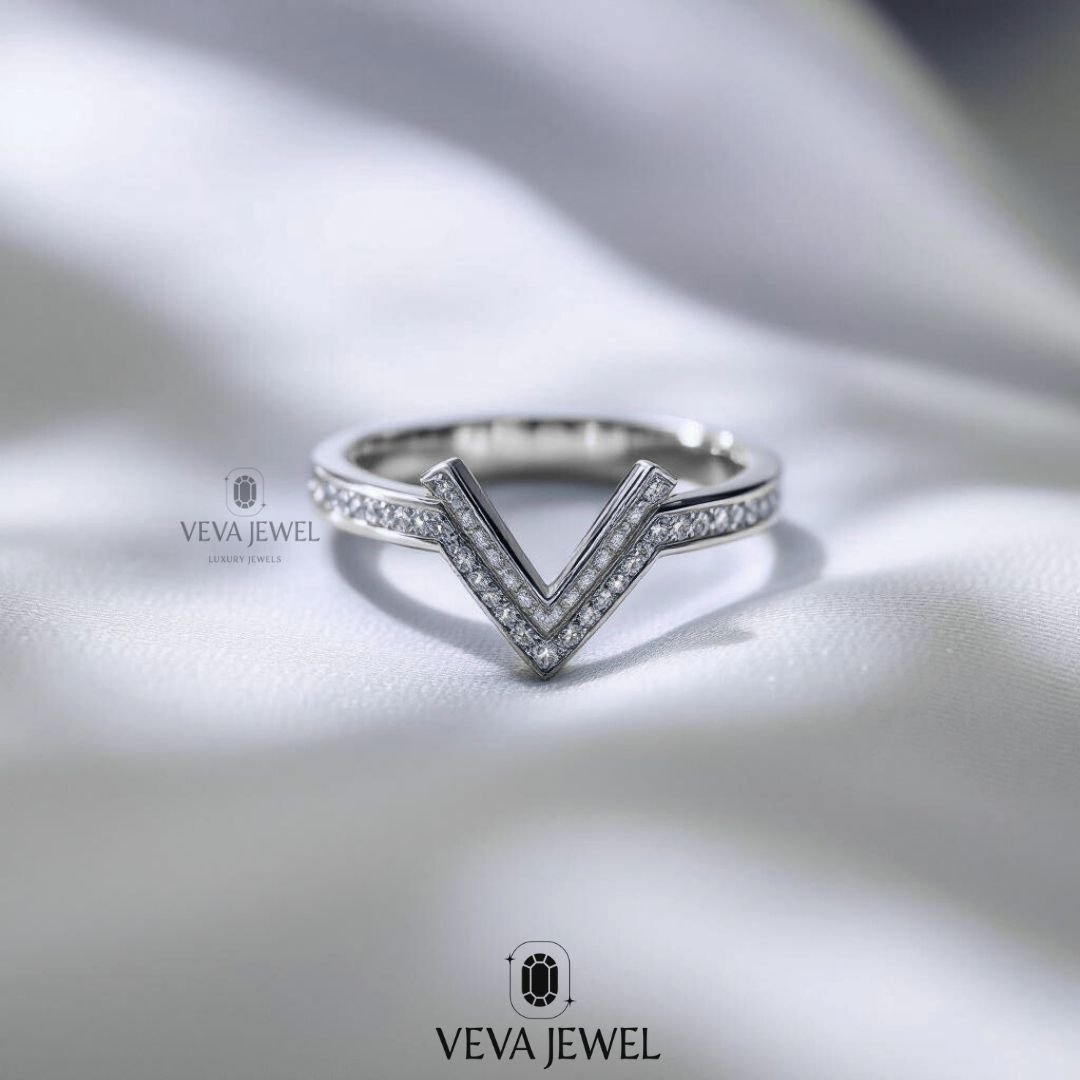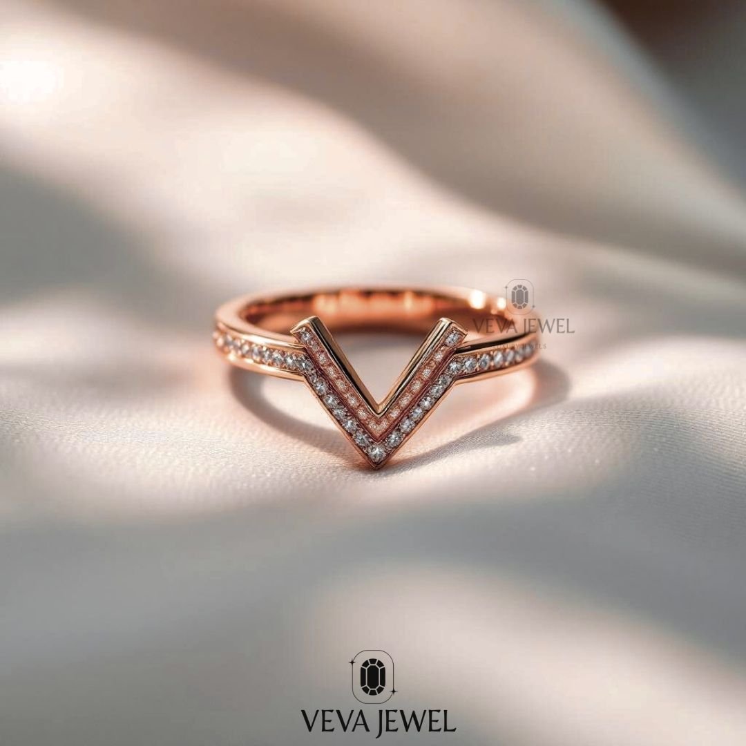 Design: Modern Chevron V-Band with Pave Diamonds