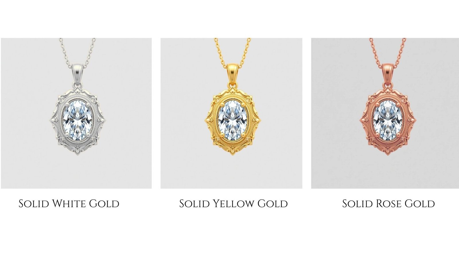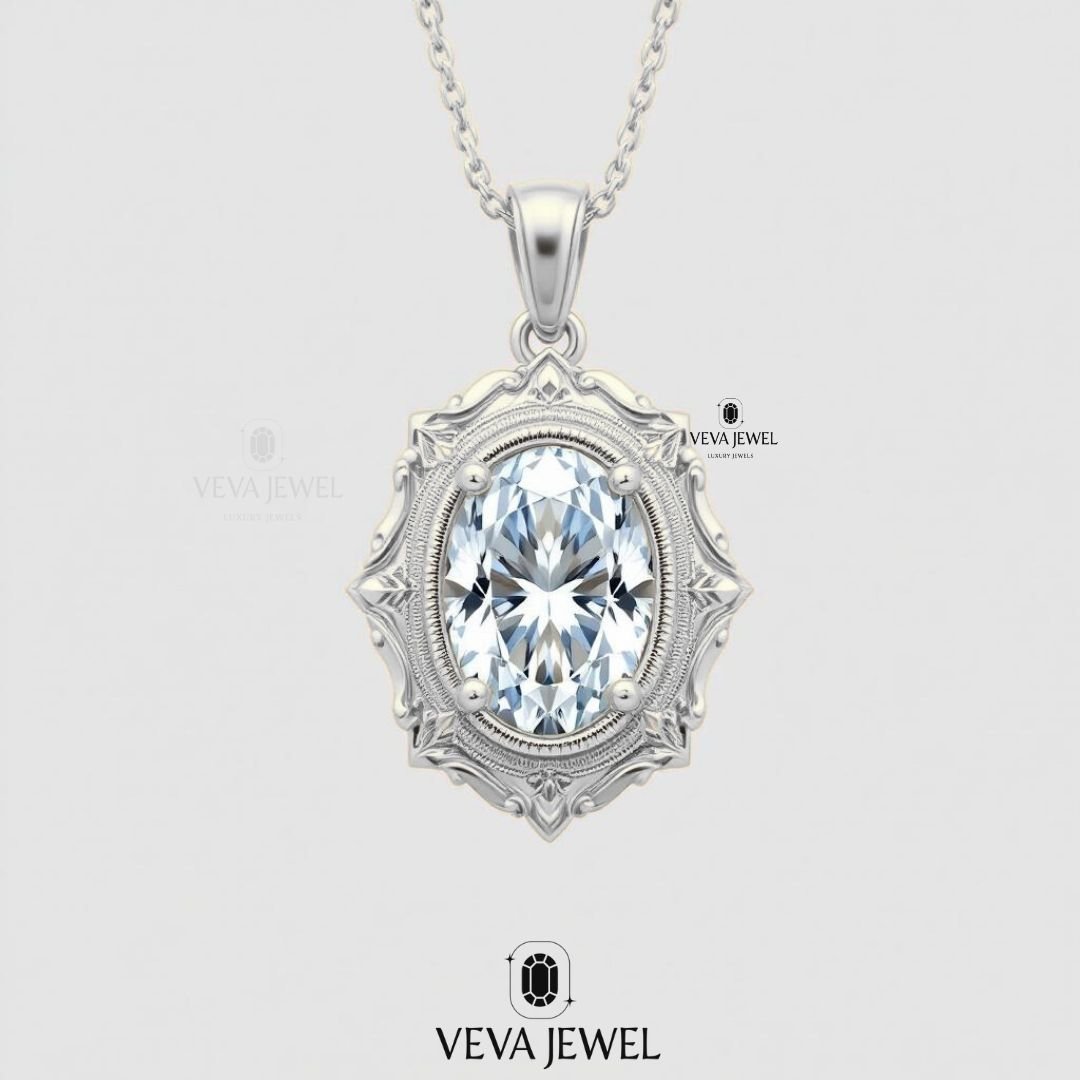 Add timeless charm to your favorite chain with this standalone oval moissanite pendant, exquisitely designed with a vintage scroll frame. This handcrafted pendant features a brilliant oval-cut moissanite nestled in an ornate baroque-inspired gold bezel — perfect for those who love customizable and interchangeable fine jewelry.
